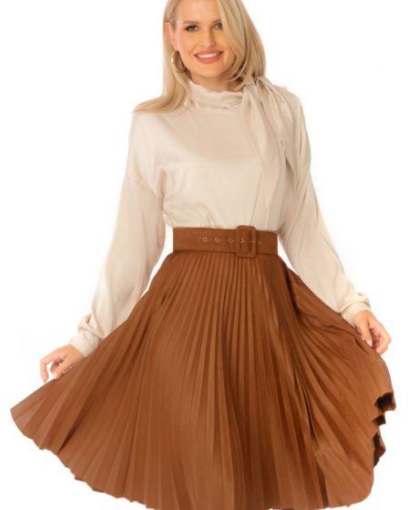 Fusta plisata Pretty Girl maro cu accesoriu curea