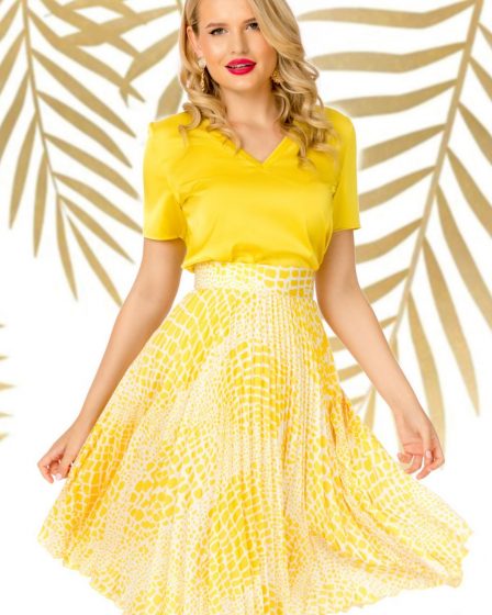 Fusta Pretty Girl plisata cu imprimeu galben tip sarpe