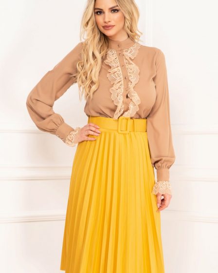Fusta InPuff eleganta mustar cu pliseuri si centura