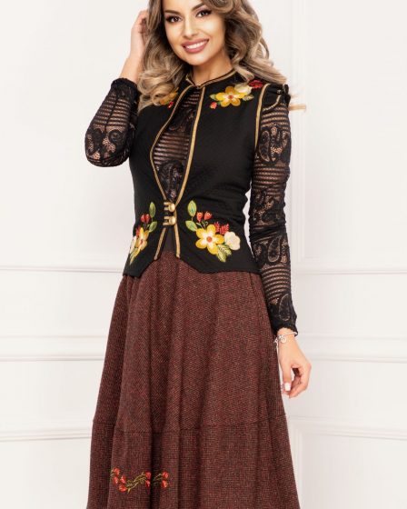 Fusta Venezia traditionala bordo din lana in clos cu motive florale brodate