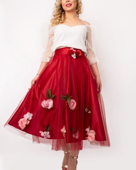 Fusta Dama Lora Din Tafta, Tulle Si Flori Aplicate, Malika Fashion la 219 lei