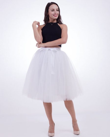 Fusta Tulle Plisat Ema Alba la 150 lei