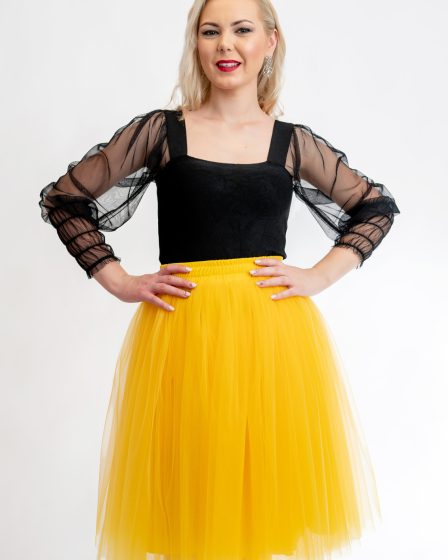 Fusta Tulle Scurta Galbena By Malika Fashion la 150 lei