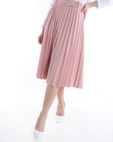 Fusta plisata Ruby midi cu curea, roz la 129 lei