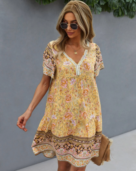 Rochie Solis scurta lejera din vascoza multicolor DRGR0056 Dargen la 189 lei