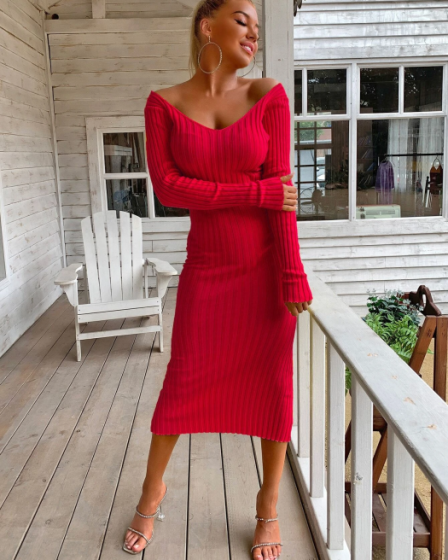 Rochie Timeea lunga lejera din vascoza rosu DRGR0047 Dargen la 219 lei