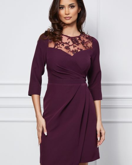 Rochie Dy Fashion mov cu dantela la bust si pliuri pe fusta la doar 239 lei