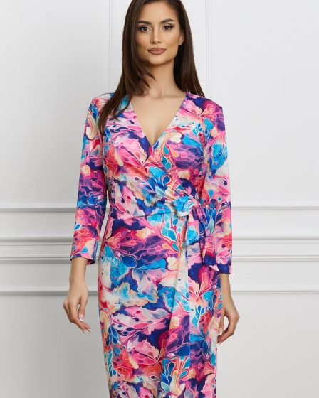Rochie Lorena multicolora cu imprimeuri roz la doar 239 lei