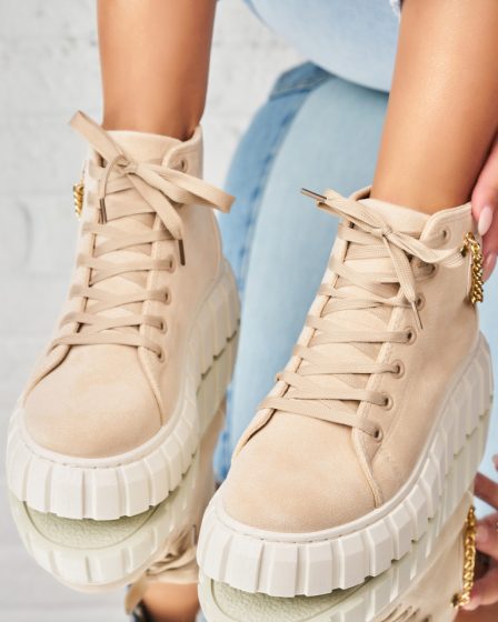 Sneakersi dama Piele Ecologica Intoarsa Bej Evony A2016 la 88.99 lei