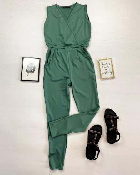 Salopeta dama casual lunga verde cu decolteu parte peste parte la 129 lei