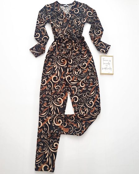 Salopeta dama eleganta animal print cu maneca lunga si cordon in talie cu imprimeu linii serpuite la 129 lei